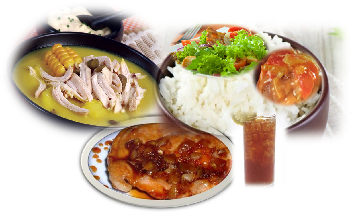PLATO FESTIVAL (POLLO RELLENO, ARROZ DE COLORES, ENSALADA FRIA, ENSALADA DULCE)